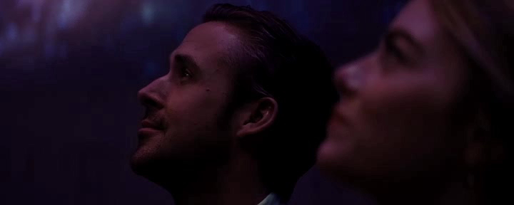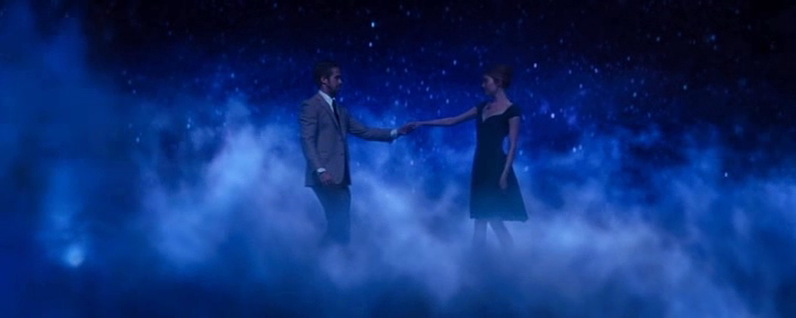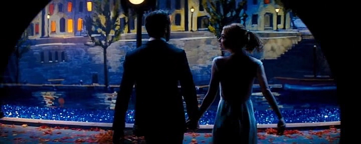 Y convierte los números musicales de 'La La Land' en la excusa perfecta para homenajear al cine clásico, especialmente el musical, y así atrapar a los espectadores nostálgicos y a los románticos, pero en realidad, utiliza la fantasía incluso haciendo volar (literalmente) a sus actores, para plasmar en imágenes los sueños de sus personajes, sueños que no se van a cumplir, pese a las apariencias. Eso queda expresado a la perfección en el largo interludio musical que inserta justo antes del desenlace del film y donde nos muestra desde esa fantasía, un resumen de la vida de Sebastian y Mia juntos, desde que se conocen, se enamoran, se apoyan en sus respectivas carreras, hasta compartir un futuro juntos (algo que no sucede) y así contentar a parte de la audiencia ante el final que se avecina, IDEALIZANDO su relación como un amor maravilloso por el que ninguno de los dos tiene intención de luchar, prefieren ELEGIR su proyección personal e individual en busca de su SUEÑO, que compartirlo con el otro.