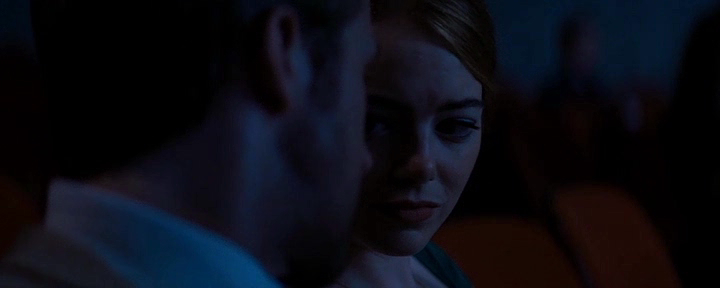 ¿Se ha convertido en sólo un sueño imposible, como vemos entre brumas en la secuencia musical del falso flashback? ¿Y él tiene el local que quería? Tal vez, pero lo ha llamado 'Seb's' que es el nombre que eligió ella y no 'Brocheta de Pollo' en homenaje a Charlie Parker como quería él, y a saber que otras concesiones habrá hecho en un entorno donde se nos muestra como cierran salas de cine y salas de jazz puro, ¿acabará vendiendo tapas y tocando samba?. Cuando se pone a tocar el piano después de verla no puede elegir una canción más triste, una melodía que solo ellos conocen. No parece que ninguno de los dos sea feliz con el cumplimiento de sus sueños. ¿De verdad no pueden estar juntos? ¿Qué se lo impide? Priorizan su carrera por encima de su relación, aunque les duela. Sí, ella ahora tiene pareja e hija, pero más como una convención social que como un amor verdadero, un falso impedimente para justificar que sigan separados. Ni siquiera le ha hablado a su marido de lo importante que fue Sebastian en su vida o para convertirse en actriz, él no sospecha en ningún momento y si le hubiera hablado alguna vez de un pianista de jazz... Si no tiene esa confianza con su marido es porque es una relación de conveniencia, alguien que no le estorba en su carrera profesional. Sebastian y Mia mantienen su relación oculta porque, en el fondo, deben engañar a los demás y engañarse a sí mismos, igual que Sebastian se engañaba cuando tocaba el teclado en 'The Messengers' (la secuencia del concierto es donde le vemos sonréir más que en toda la película y todos sabemos, sin embargo, que no está haciendo lo que le gustaría hacer). Los dos saben que viven unas vidas de fantasía donde ellos ahora son las estrellas, pero también saben que ya nunca volverán a volar por el universo como cuando estaban juntos siendo un músico y una actriz del montón, pero Chazelle parece querer decirnos 'the fame is bigger than love'.